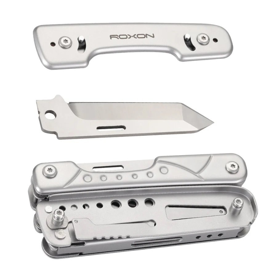 Roxon Phantom S802S představuje vrchol multifunkčních nástrojů – je navržen pro uživatele, kteří hledají maximální flexibilitu, preciznost a výkon v jednom kompaktním multitoolu. Díky modulárnímu systému výměnných čepelí ROXON Interchange Blade Series lze čepel snadno vyměnit za jiný typ podle potřeby – součástí je například taktická čepel typu American Tanto.