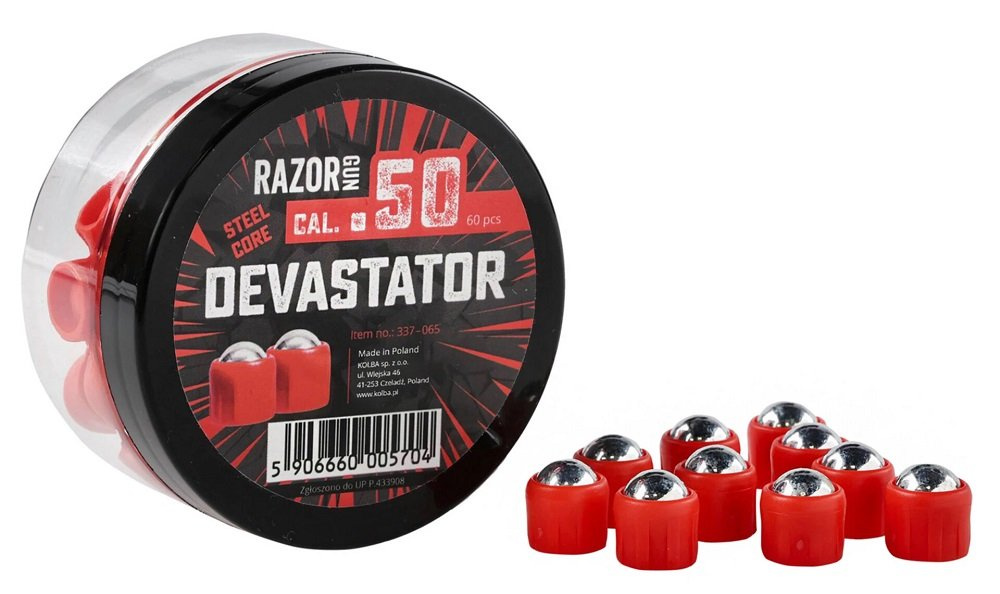 RazorGun Devastator je extrémně účinné ocelové střelivo určené pro CO2 RAM zbraně v ráži .50 (12,7 mm). Navrženo pro maximální dopad a destrukci, je ideální pro sportovní a taktickou střelbu, nácvik obranných situací nebo testování účinnosti zbraní.
