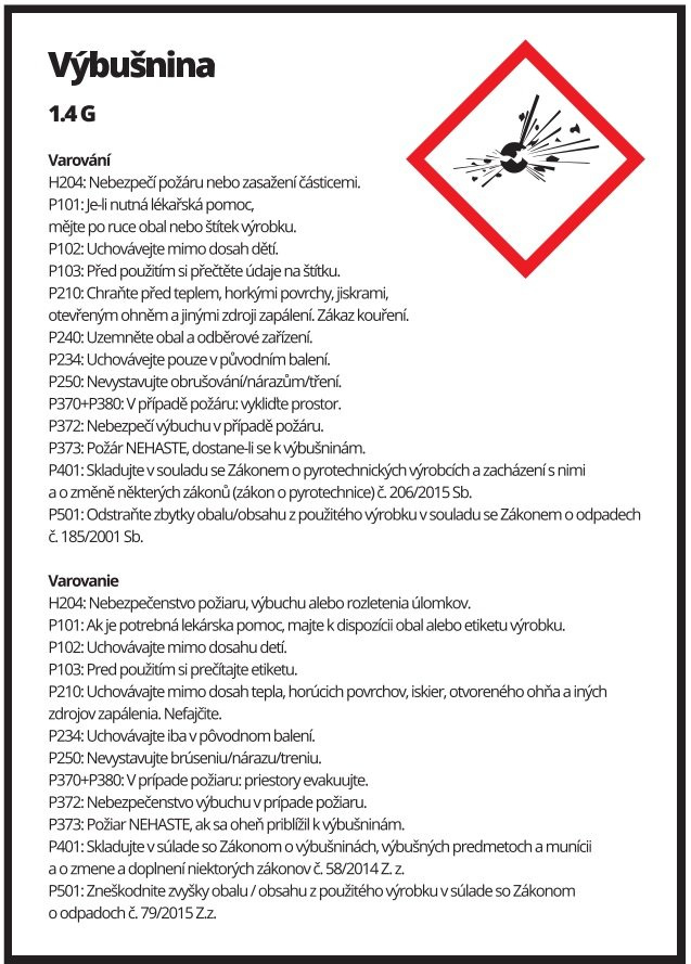Balení obsahuje 50 kusů světlic šrapnelového typu, které po výstřelu vytvářejí charakteristický rozptyl a silný akustický efekt. Instalace je jednoduchá – světlice se vloží do adaptéru na plynové pistoli nebo revolveru a aktivuje se pomocí standardního slepého náboje ráže 6 mm nebo 9 mm (dle typu zbraně).